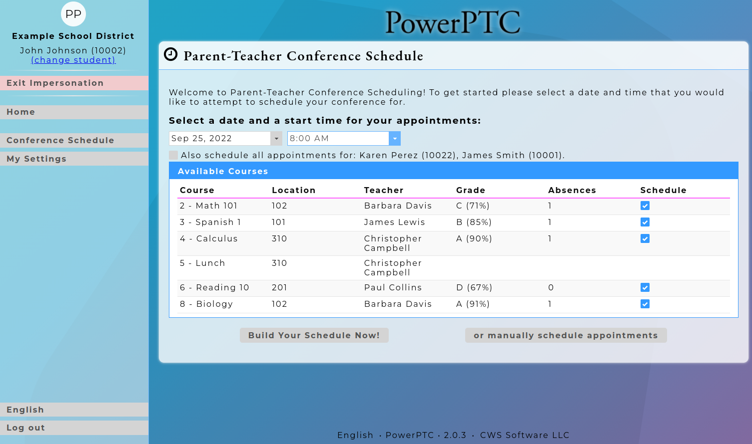 With PowerPTC, Parents and Guardians create their appointments on their schedule